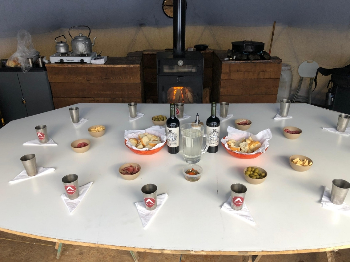 Para coronar el día, nuestro domo nos ofrecerá cobijo y el calor del fuego nos repondrá de la caminata. Un buen guiso de montaña y un café caliente serán el cierre perfecto antes de iniciar el regreso de nuestro Trekking Laguna Esmeralda Invierno, cargados de la energía del sur.