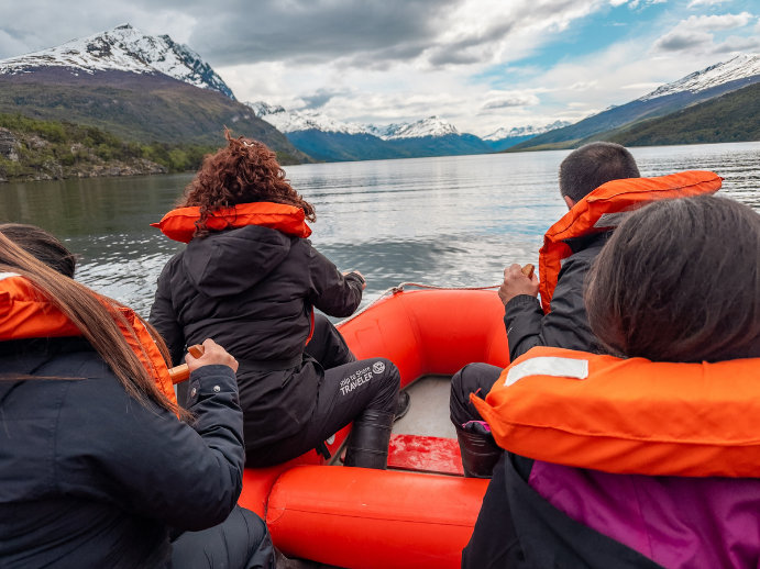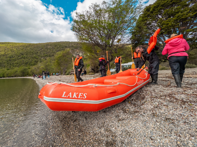 Finalmente, iniciaremos un descenso en balsas inflables por el río Lapataia. Este cauce nos guiará suavemente hacia nuestro objetivo: la Bahía Lapataia, el hito geográfico exacto donde culmina la Ruta Nacional Nº 3 y la Ruta Panamericana. Tras alcanzar este punto emblemático y disfrutar de las vistas finales del Canal Beagle, emprenderemos el regreso a la ciudad de Ushuaia.